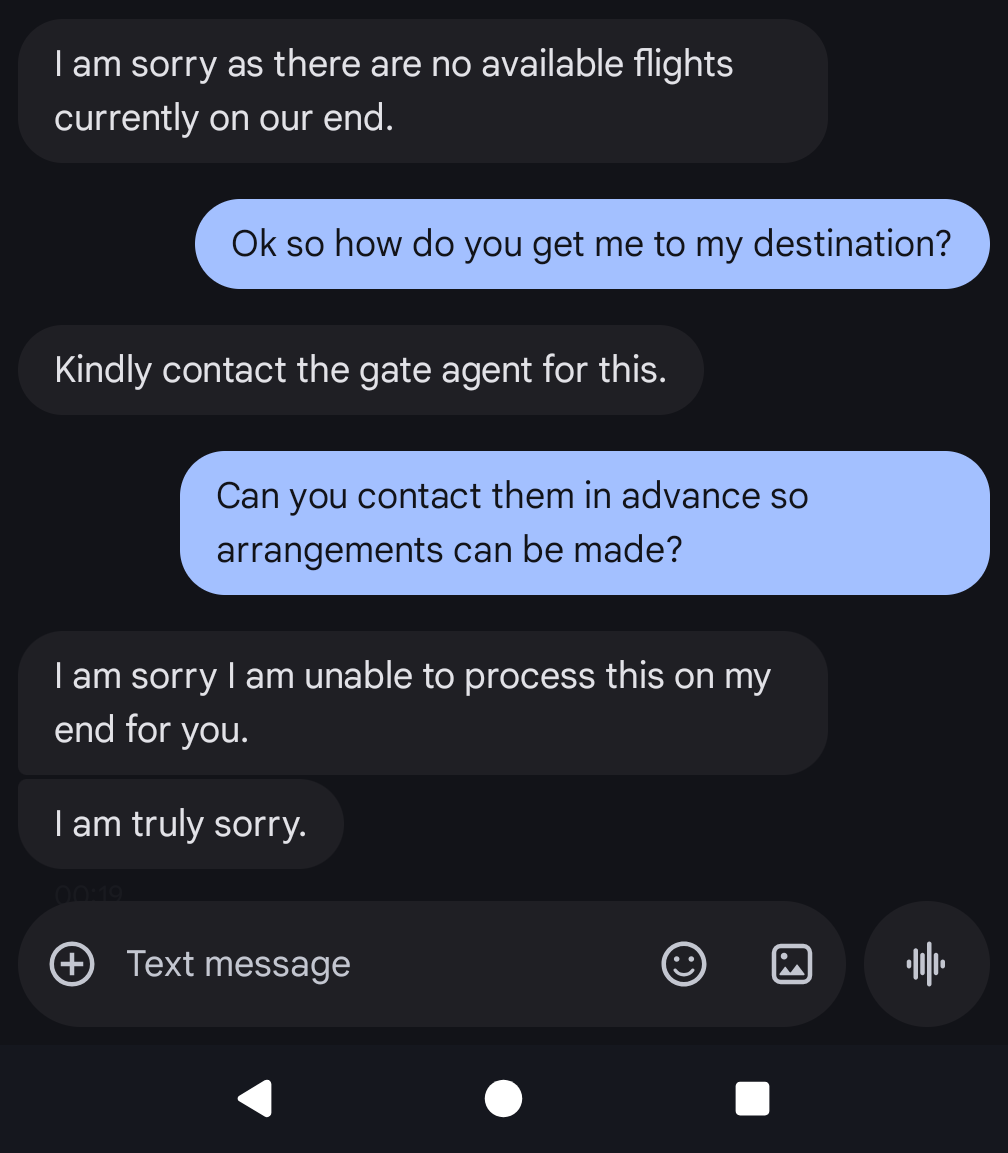 Thankfully, Delta had already anticipated this exact situation! They had even staffed an entire department of people who were willing to text you but have absolutely no ability to help.