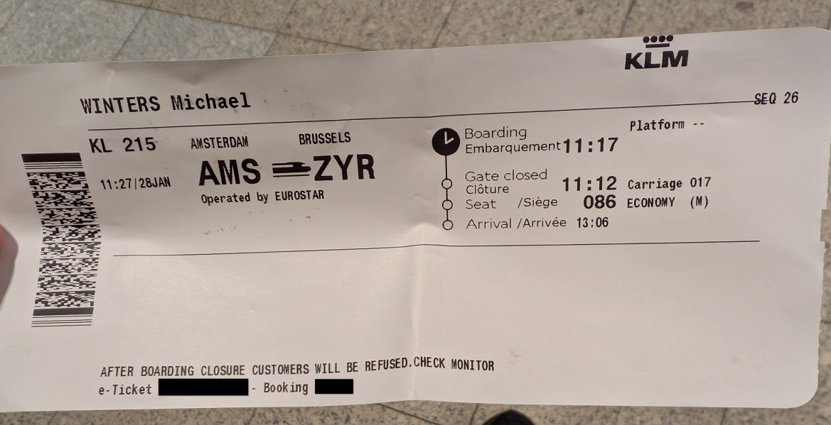 After literally 20 minutes of scouring every text element on the ticket and googling it, I determined that there was a 0% correlation of all available information (unless my train was actually a model number for a dot matrix printer from the 90s.) It would have been reassuring in that moment to know that some of my EU associates would later look at my ticket and mutter, “Huh. Weird.”
